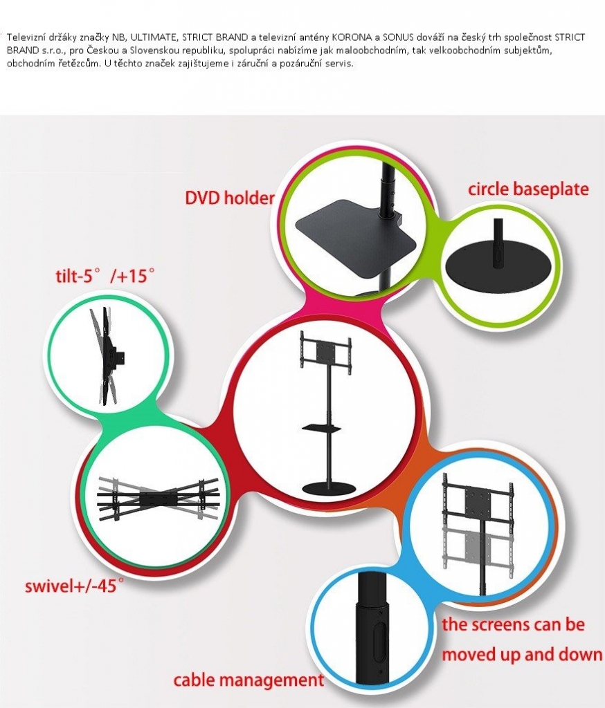 Profesionálny výškovo nastaviteľný stojan STRICT BRAND SB4060 s nosnosťou 45 kg pre TV a monitory do 65"